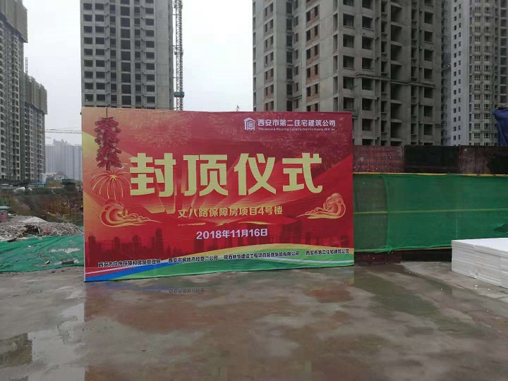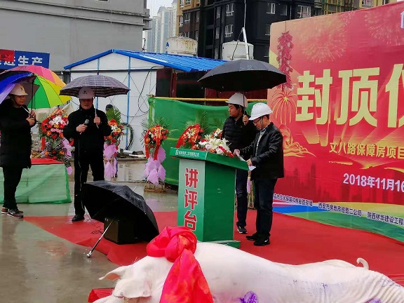 11月16日星期五丈八路保障房項(xiàng)目的施工現(xiàn)場(chǎng),禮炮在片片雨云中炸響,鞭炮粘著雨花淅淅的散落著,雖然下著小雨,但是現(xiàn)場(chǎng)依舊人山人海,熱鬧非凡;10點(diǎn)50分隨著項(xiàng)目指揮長(zhǎng)邢京平同志的聲音響起,丈八路項(xiàng)目封頂儀式正式開(kāi)始。丈八路保障房項(xiàng)目4號(hào)樓主體順利封頂,標(biāo)志著丈八路項(xiàng)目再一次完成了重要節(jié)點(diǎn)性的施工任務(wù),這是所有現(xiàn)場(chǎng)施工人員堅(jiān)持不懈的努力下共同完成的勞動(dòng)成果;開(kāi)發(fā)單位西安市經(jīng)營(yíng)二公司書(shū)記王備戰(zhàn)同志在講話中對(duì)現(xiàn)場(chǎng)施工人員的工作予以高度肯定,并再三叮囑大家要再接再厲完成好后續(xù)工作,參加本次活動(dòng)的還有建設(shè)單位各級(jí)領(lǐng)導(dǎo),監(jiān)理單位總監(jiān)及各專業(yè)工程師,施工單位西安市第二住宅建筑公司副經(jīng)理杜軍、技術(shù)總工劉琪、指揮長(zhǎng)邢京平、現(xiàn)場(chǎng)負(fù)責(zé)人陳衛(wèi)民及各級(jí)現(xiàn)場(chǎng)施工人員。